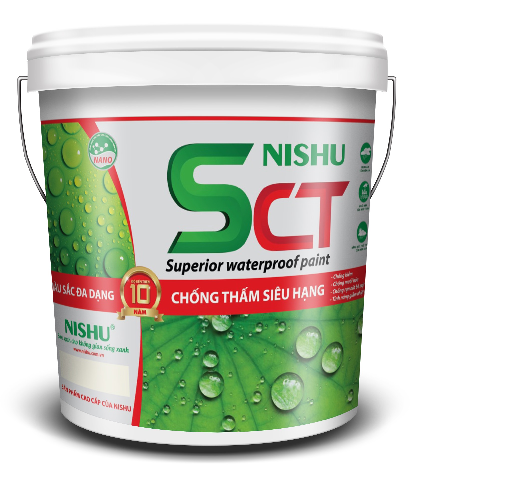 SƠN CHỐNG THẤM NISHU SCT là hệ sơn Chống Thấm và Trang Trí gốc nước chuyên dụng cho các công trình xây dựng dân dụng và công nghiệp. Sản phẩm được thiết kế với các tiêu chí khắc nhượng điểm của nhiều định dạng thời tiết: Mưa dầm nồm ẩm của Miền Bắc, Muối hóa môi trường của miền trung, thay đổi nhiệt độ bề mặt liên tục giữa nắng và mưa của Miền Nam.